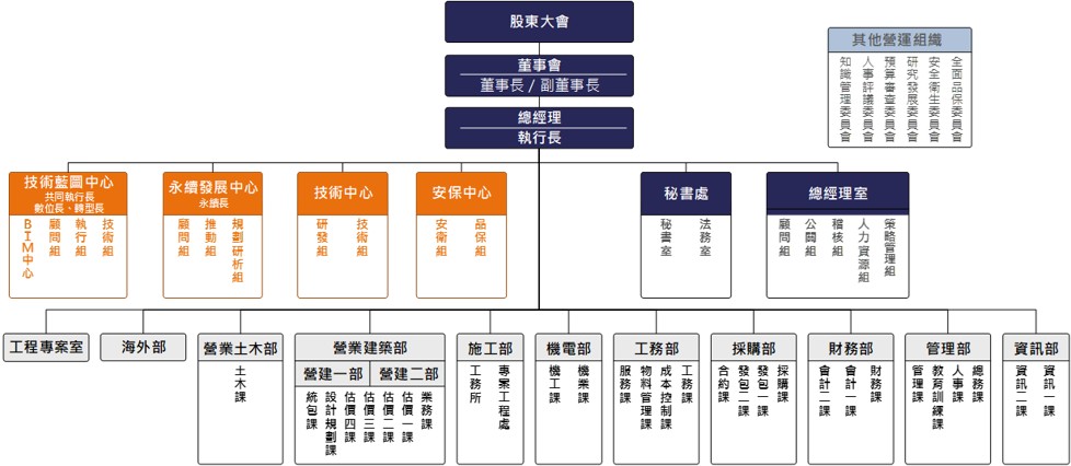 因應全球環境變遷及外在競爭趨勢,促進業務經營深化、多元化,公司將營業部門劃分為「營業建築部」與「營業土木部」,不僅能提升服務品質,也能確保為客戶提供更具競爭力的方案。營業建築部又區分為一部及二部,針對「高科技廠房」我們有經驗豐富的團隊,提供給業主系統性的施作方法,達到高科技產業對快速的需求;針對「辦公、住宅、大樓等」,我們有專業的團隊,協助客戶進行預算編列與工期推估,面對不同客戶皆能滿足需求。